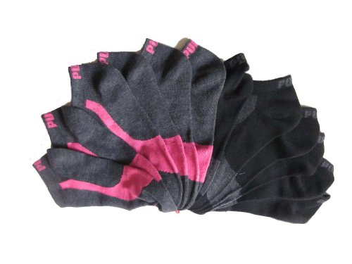 Six Pair Women's Puma Athletic No Show Socks in Gray and Black.6 Pair Puma Women's Athletic Low Cut Socks Gray and Black