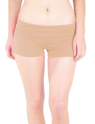 Fold Over Solid or 2 Color Yoga Shorts (Small, Beige)