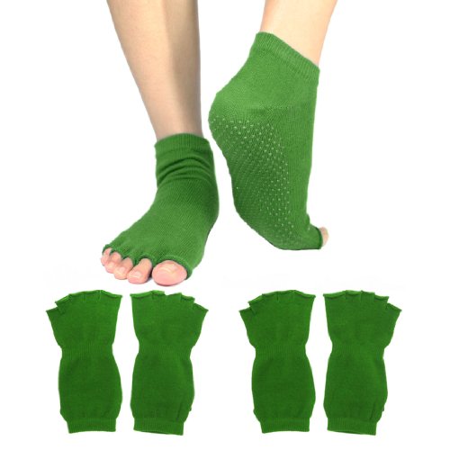 kilofly Non-skid Half Toe Cotton Yoga Socks Value Pack [Set of 2 pairs], Dark Green