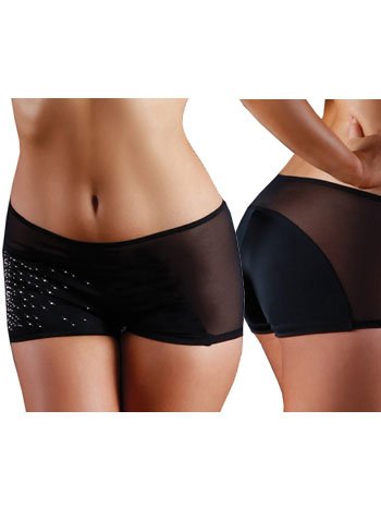 Vertical Vixen pole dancing showgirl rhinestone short with sheer detail. Matching top# VV013BK sold separately.Pole Fitness Rhinestone Shorts - SMALL/MEDIUM