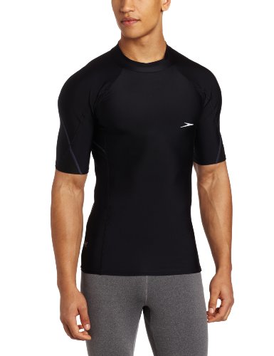 Speedo equals better fit, performance, quality, and innovation. The fitness short sleeve rashguard is a great performance enhancing coverup top from our men's fitness collection that works hard to protect you from the sun's harmful rays. It features a pullover crew neck with accent stitching and offers the perfect technology for a hot day at the beach or pool because it has trademarked uv block the burn sun protection. It is designed for the hard core or recreational athlete seeking both performance and comfort features and is ideal for training, lap swimming, running, surfing, water aerobics, water therapy or trips to the gym. Look and feel your best in or out of the water, while you play, train or win in speedo, the choice of champions.
