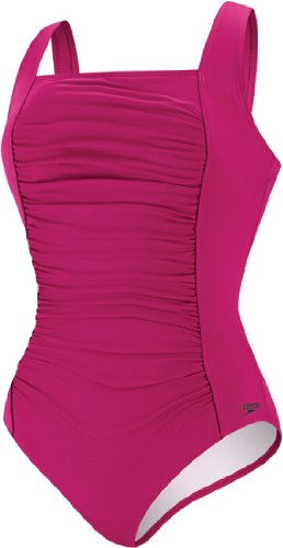 Speedo equals better fit, performance, quality, and innovation, the endurance+ shirred tank has our exclusive hydro bra construction with oval shaped removable cups and provides underwire like support without the discomfort, it features core compression with a 32 percent spandex mesh fabric liner to provide a more slimming mid-section, made of our exclusive endurance+ chlorine resistant fabric to last 20 times longer than ordinary spandex, it also has our four way stretch technology for a body hugging fit and softer feel, the side shirring and moderate cut offers just the right amount of coverage for a bit more modest consumer, the suit is ideal for water aerobics, lap swimming, or while sunning poolside or at the beach, look and feel your best in or out of the water, while you play, train or win in speedo, the choice of champions